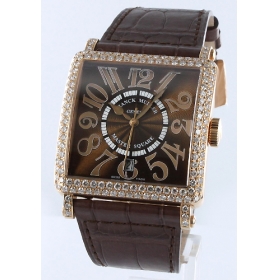 高級時計コピー >> フランク・ミュラーコピー >> マスタースクエア >> フランクミュラー マスタースクエア レリーフ ダイヤベゼル PG金無垢 クロコレザー ブラウン メンズ 6000H SC DT V D